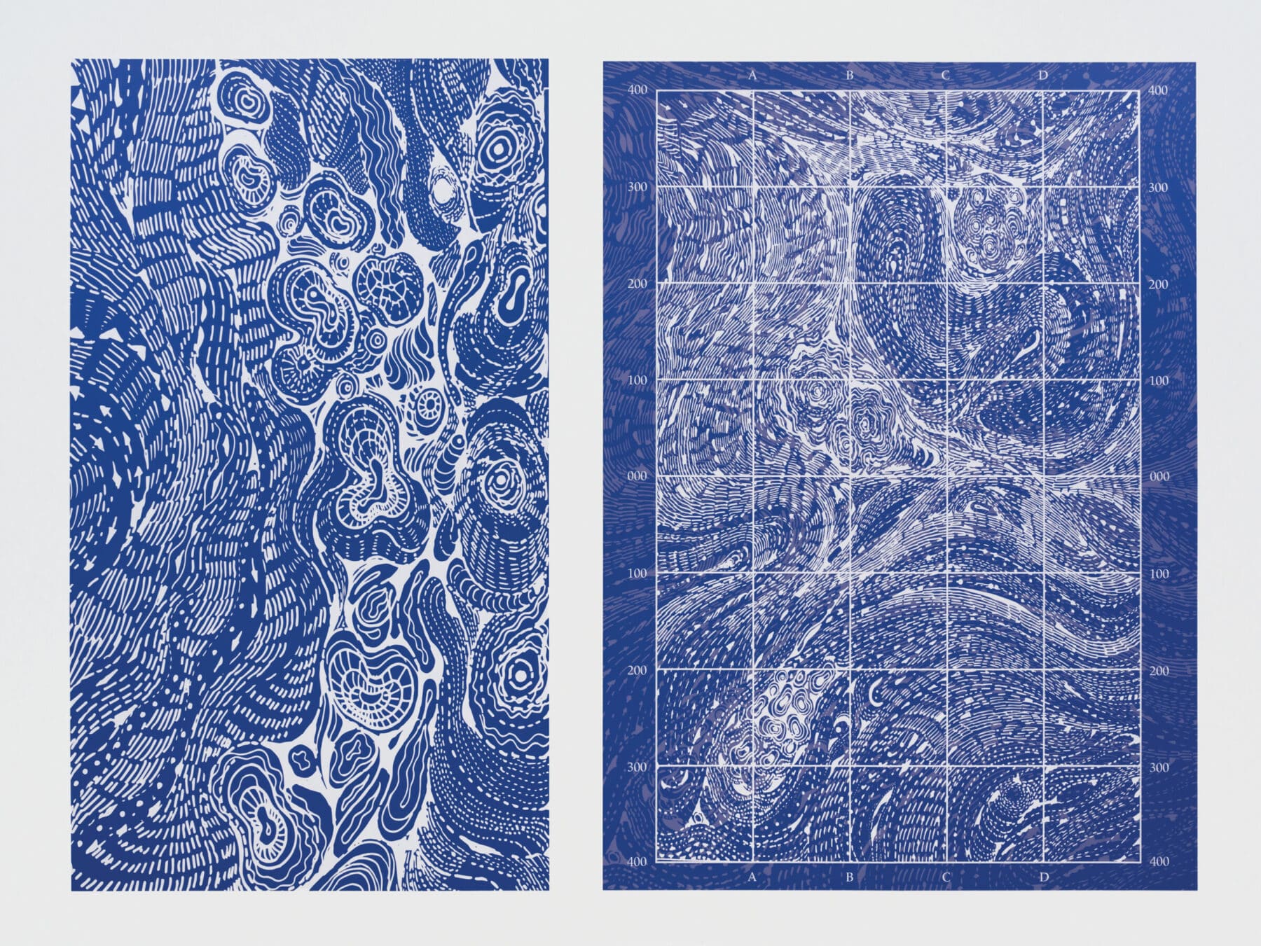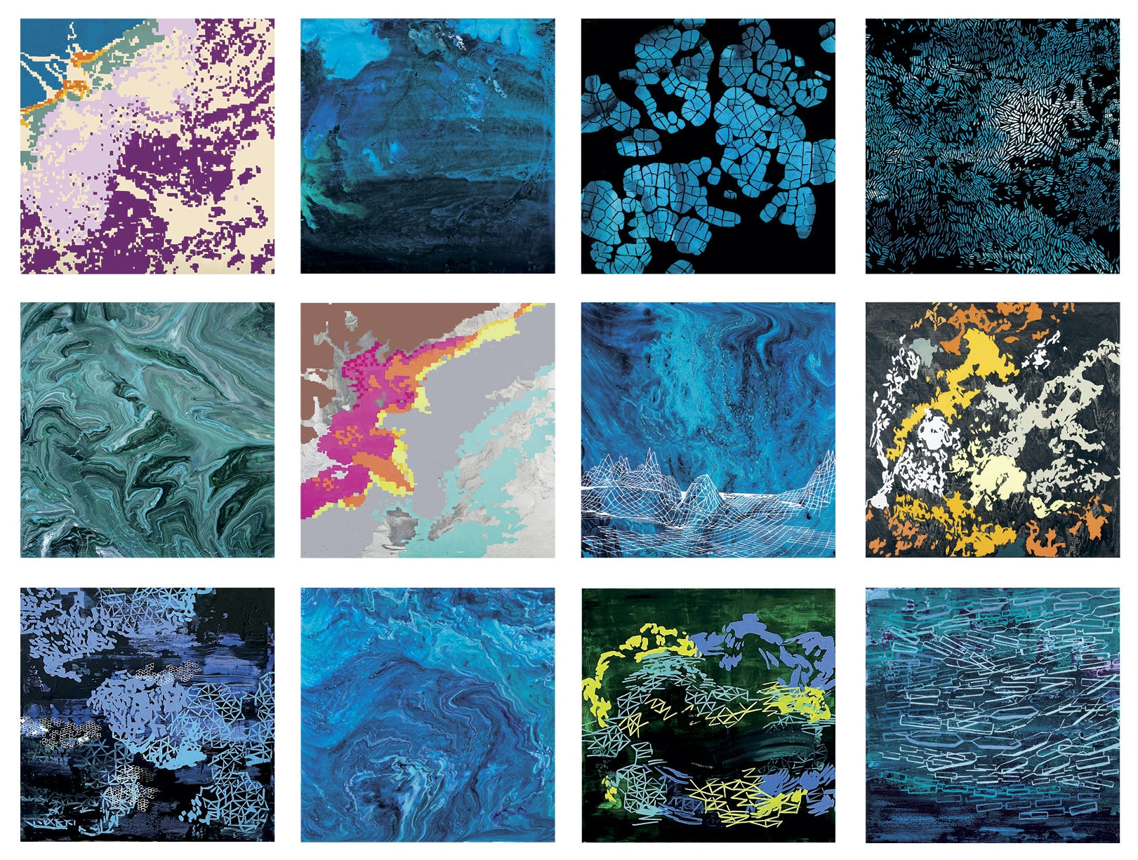 Sea Ice Daily Drawings, 2019–2022, aluminum, acrylic, paper, and ink (detail) Integrating field data, remote satellite imagery, scientific analysis, and multimedia visual representation to document Arctic ice that is disappearing due to climate change, this artwork is the outcome of a four-year collaboration involving art, design, and polar science between artist Cy Keener, landscape researcher Justine Holzman, climatologist Ignatius Rigor, and scientist John Woods. View Gallery